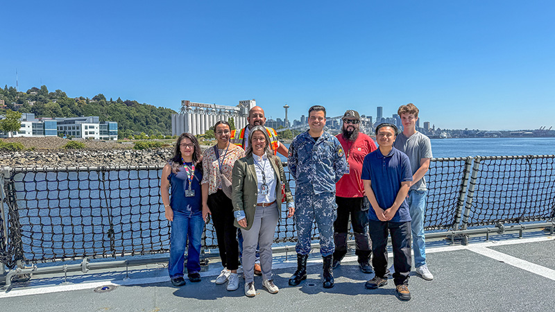 Members of the Port of Seattle’s Latino Unidos employee resource group toured the vessel and engaged directly with the ship’s sailors, further deepening cultural and professional connections.