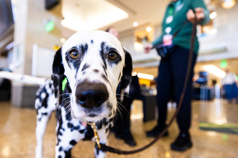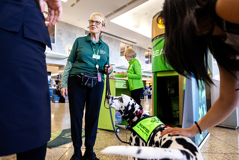 Forrest Gump has been known to say, “Life is like a box of chocolates — you never know what you’re gonna get.” At Seattle-Tacoma International Airport (SEA), you might just get a moment of calm and a wagging tail from Tuck, a six-year-old Dalmatian and certified therapy dog, if you catch him at his normal station in the Central Terminal or roaming through the terminal with his handler Lynn Gonzalez.