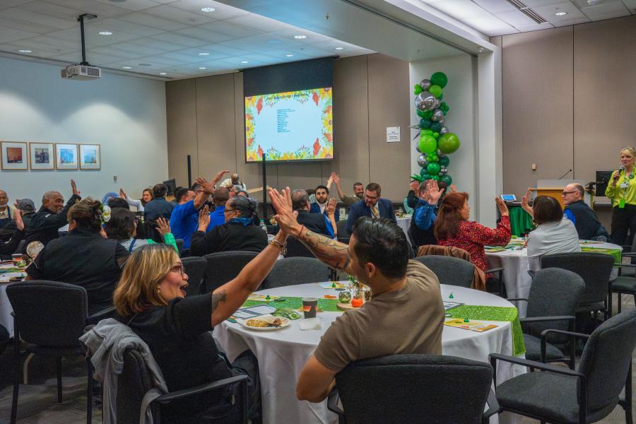 Currently 3X per year we hold our High 5 Celebration Events. SEA employees from all over the airport who have received a customer compliment regarding awesome customer service collected through our SEA Customer Care form, social media, email, etc., and employees who have received a 100% Quality Assurance audit score are invited to the party where historically we have had catered food, beautiful décor, fun music, and a photo booth – It’s a fun “green carpet” experience.  We even have a green carpet that honorees walk in on! We work to bring new themes and ideas to these events, so you never know what’s going to happen next!